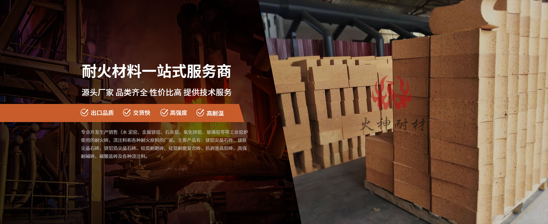 鄭州火神高溫新材料公司(簡稱“鄭州火神”)成立于 2015年,位于河南省新密市。是一家專業開發生產銷售(水 泥窯、金屬鎂窯、石灰窯、氧化鋅窯、玻璃窯等等工業窯爐使用的耐火磚、澆注料和各種耐火原料的廠家。主要產品有:鎂鋁尖晶石磚、鎂鐵尖晶石磚、鎂鋁鋯尖晶石磚、硅莫耐磨磚、硅莫耐磨復合磚、抗剝落高鋁磚、高強耐堿磚、磷酸鹽磚及各種澆注料。